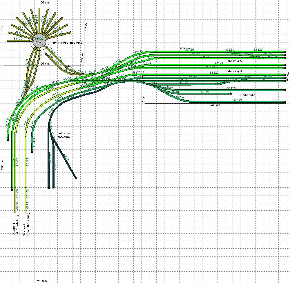 ich habe in den letzten drei Jahren sicherlich schon vier Anlagenpläne für mich teilweise geplant, war aber nie ganz zufrieden, oder der Plan hätte räumliche Probleme mit sich gebracht. Mit diesem Plan einer U-Anlage komme ich jedoch auch ohne Wartungsöffnungen überall heran. Der Gleisplan ist fast fertig, und dann werde ich ihn hier auch posten.
