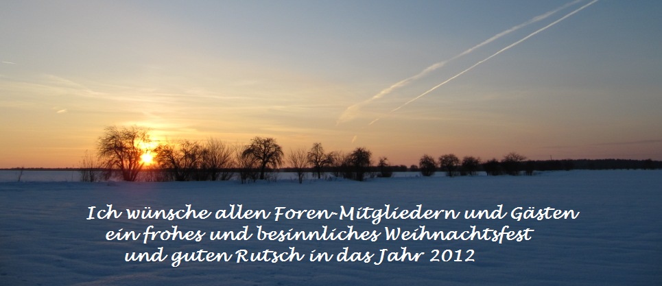 Auch von meiner Seite frohe Feiertage und für 2012 alles Gute, Gesundheit nd viel Spass mit eurem schönen Hobby.