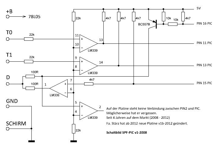 Der PIC hat die alte Version "SPF-PIC v2-0 sxdcc". Der Komparator LM339 PIN 2 hat keine Verbindung mit dem PIC.